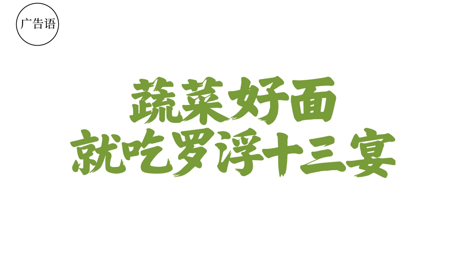 核心信息高效传递,降低认知成本。前半句“蔬菜好面”以“蔬菜”为核心关键词,直接关联“健康、天然”的产品属性,精准匹配消费者对非油炸、营养面食的需求;“好面”则以口语化表达强化品质认知,简洁传递“健康+美味”的双重价值,无需额外解释即可让消费者快速理解产品定位。后半句“就吃罗浮十三宴”将品牌名“罗浮十三宴”与消费场景直接挂钩,通过“就吃”的行动指令,将“蔬菜面”品类与品牌形成强关联,降低消费者决策成本,强化“想吃蔬菜面就选该品牌”的条件反射。